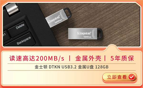 金士顿DTKN闪存盘拥有很高的性价比,并且金属材质坚固耐用,即便没有接口保护帽依然可以抵御意外磕碰或者跌落。在规格方面,采用USB 3.2 Gen 2接口,读速高达200MB/s,应对日常移动存储任务绰绰有余。