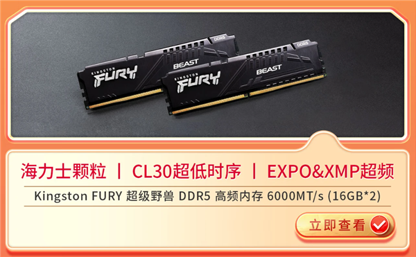 Kingston FURY超级野兽系列内存中的DDR5 6000 16GBx2套装十分耀眼,这款新世代内存具备强劲的性能,拥有CL30超低时序,充分释放澎湃动力,是追求出色体验的关键配置。精选优质颗粒,凭借优异的性能和品质,一直都是广大消费者装机或者升级需求的出色选择,总容量32GB可以满足系统和常用软件、游戏的运行需求,甚至对于大多数消费者受用终身。
