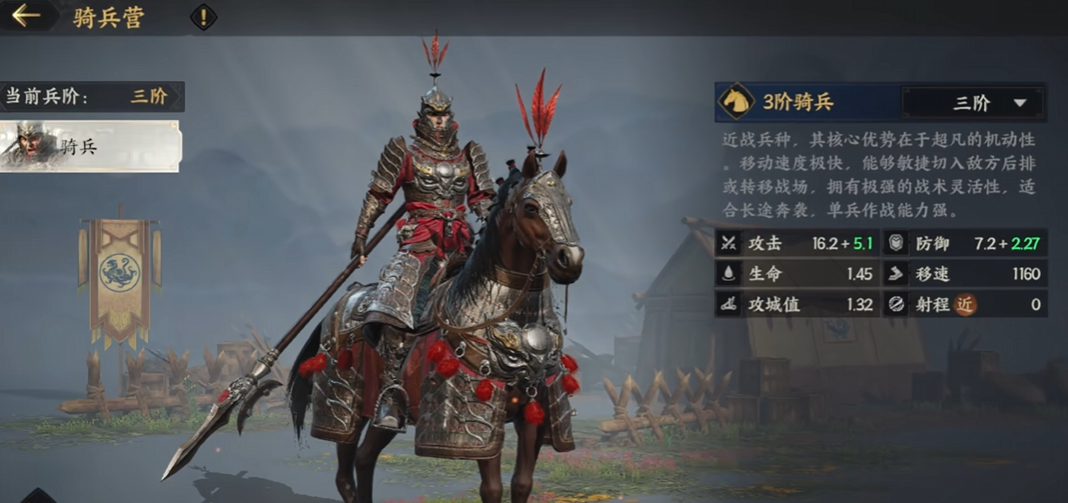 骑兵的移动速度很快,在战场上是比较灵活的单位,往往用来撕碎对方的阵型,打出突破口,在战场上会优先偷袭敌人后排,所以若是大家手里有这类士兵的话,建议先找到敌方阵型相对薄弱的位置,然后再派骑兵进行突袭,利用间隙袭击,胜算会大大加大很多。
