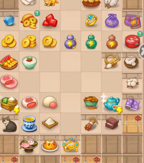 里面的玩法以消除为主,并不存在连线,可以将两个相同的物品进行点击,然后它们两个便能合成出一个全新的物品了。然后我们需要一直合成出客人所需要的物品为主,整体难度不高,基本上在体验过几次之后便可以掌握关于游戏具体的玩法。