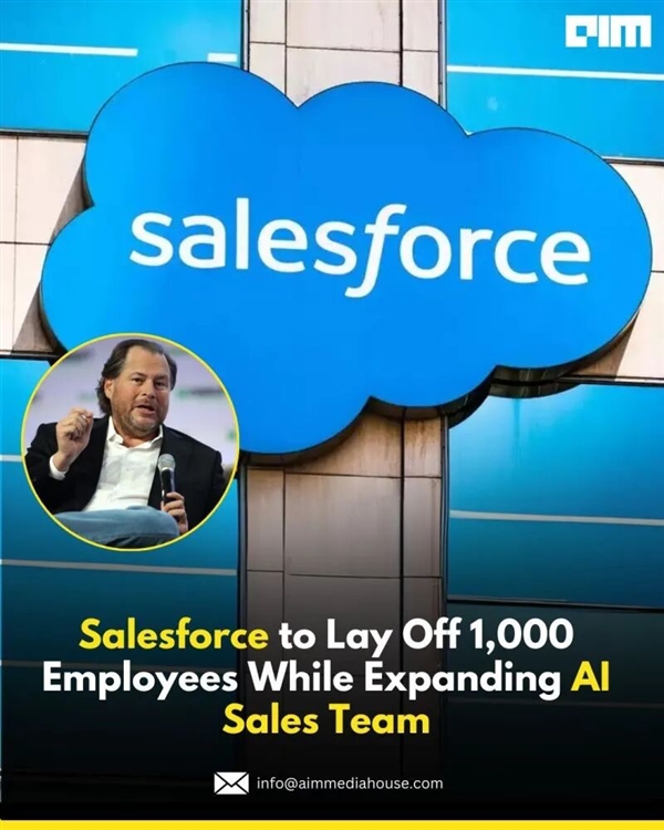 Salesforce的CEO马克·贝尼奥夫(Marc Benioff)直截了当地表示“用了AI,我不需要那么多员工了。”他表示AI现在承担了Salesforce约50%的工作,公司已经冻结工程职位的招聘。Salesforce今年已经宣布裁员了9000人。