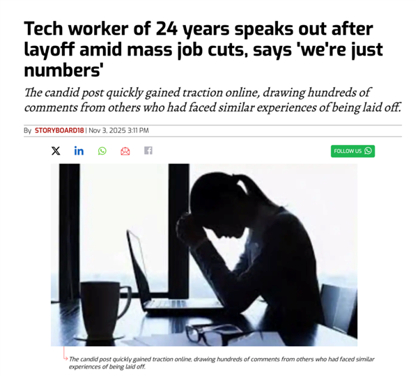 24年的忠诚,换来的是一封冰冷的通知邮件。这位工程师写到,自己感到愤怒、背叛与幻灭。他写道,“员工不再有忠诚度可言,我们都变成了电子表格上的数字,而高管们却拿着数百万美元的奖金。”