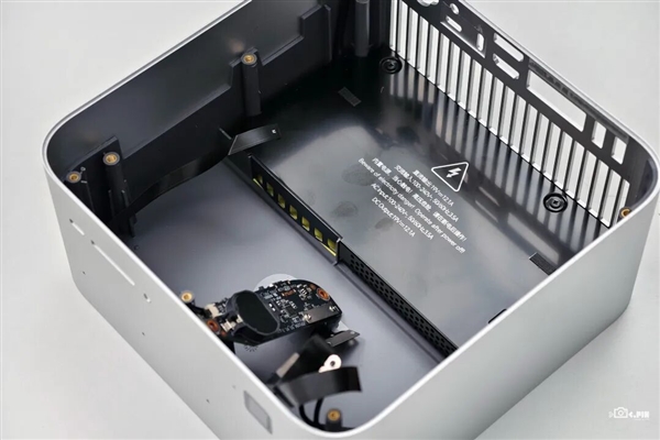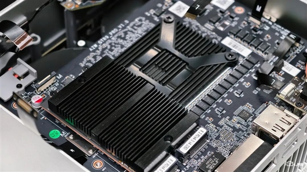 托尼选择直接拆开给大家看看。打开底盖,映入眼帘的就是一块利索的主板,侧面比较突出的一块是 M.2 盘位,上面也加了一块散热器来控制温度保证性能,拆掉散热器后就能方便地更换或者添加硬盘了。
