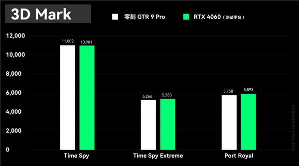 而在衡量图形性能 3D Mark 测试中,零刻 GTR 9 Pro 的得分跟我们前段时间测过的 RTX 4060 差不多。