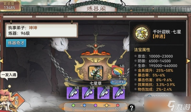 结言:建议大家利用好手中的资源先做出主副c的法宝,辅助弟子练度不够可以继续用着三阶玉,二阶木之类的法宝。