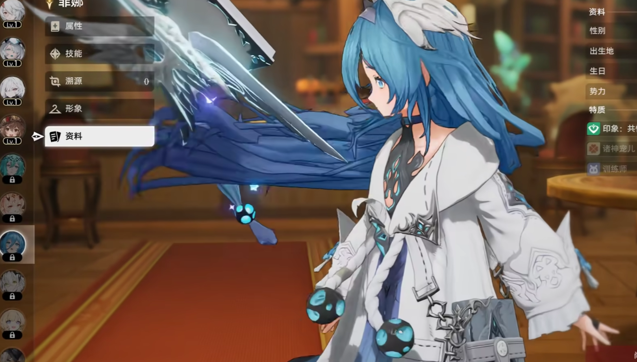 贝蕾妮卡为暗属性五星角色,精通单手剑与枪械两种武器系统。她在使用近战攻击时可向前突进,并对前方区域发动四段范围伤害。当切换至远程模式后,能够释放剑气进行中距离输出。此状态下虽会持续消耗神志值,但其被动技能可在单手剑造成伤害时恢复神志,形成良好的续航循环,使她在长时间战斗中表现尤为稳定。