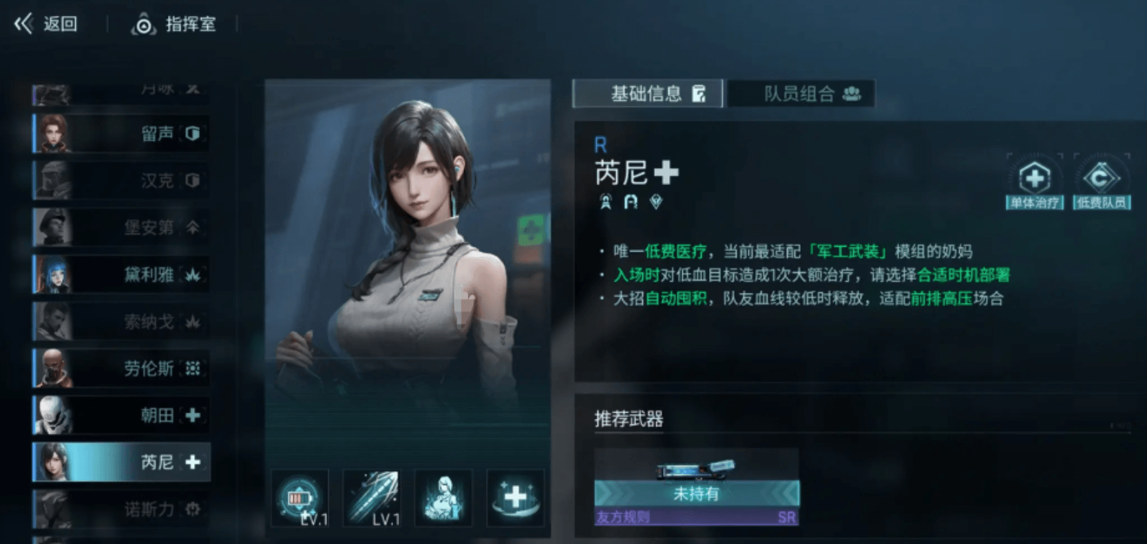 目前医疗队员不算太多,分别是橘子酱、芮尼、卡莉莎和朝田,其中芮尼作为位低费医疗队员,并且还能通过任务来获取,有着很高的性价比,也是当前环境下使用比较多的。