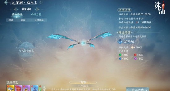 【学府·竞天工】玩法将作为仙枢线的全新玩法,后续将于每周五19:00~20:00开放,仙友们购买门票后即可在活动时间内进入场景参与玩法。