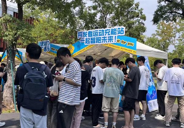 赛事期间,双方在大赛官网联合发起 “脑力运动赛” 趣味活动,以运动服饰、定制周边等丰厚奖励,邀请开发者在高强度创作之余放松身心。活动涵盖工农业制造、医疗健康、文创娱乐、教育学习、智能硬件、企业服务、特殊图像识别七大 AI 应用领域,既生动展现了 AI 技术的场景化落地成果,更以趣味问答形式为开发者带来灵感启发。9 月,“开发者运动充能站” 进校园活动陆续走进南大、中科大、西交大等高校,通过面对面交流搭建校园与产业前沿的沟通桥梁,进一步吸引高校人才加入 AI 开发者队伍,为行业注入新生力量。