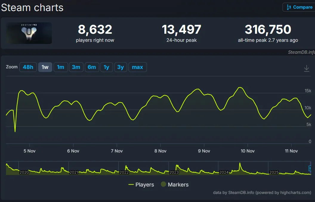 曾经是销量和玩家代表的《命运2》近年来出现了大幅下滑。在最近的财报中,索尼表示对《命运2》的销量和玩家在线数据深感失望,导致产生2.04亿美元的减值损失。