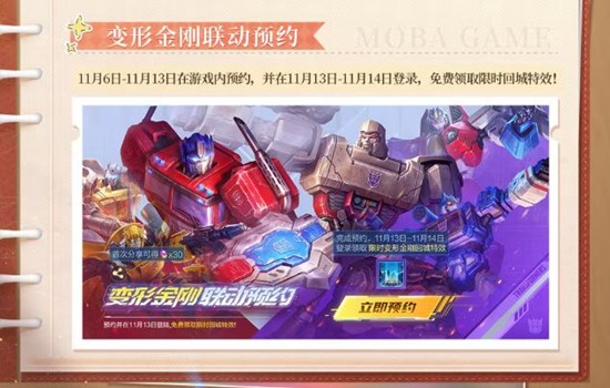 从11月6日至11月13日,玩家可以在游戏内进行预约。在11月13日至11月14日期间登录游戏,即可免费领取限时回城特效,为玩家的游戏体验增添更多乐趣。