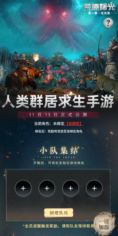 2、领奖阶段,可在页面中绑定11月13日公测所开的服务器中创建角色并领奖,将已解锁的奖励领取到该角色。