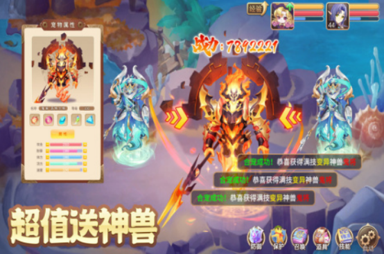 这是一款采用二次元美术风格的回合制手游,内置完善的宠物养成体系。除了基础的召唤与进阶功能外,还加入了羁绊系统与翅膀系统,显著提升角色与宠物之间的协同能力。五大职业设定搭配新颖视觉表现,支持多人在线社交互动,便于结识战友。获取稀有神兽后,可在各类战斗中发挥强大战力。