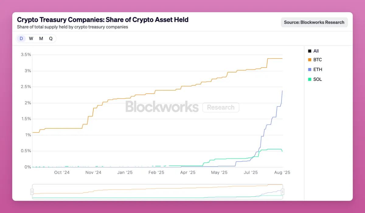 ETH DAT 用了不到 3 个月的时间就占据了 ETH 总供应量的 2.4%。