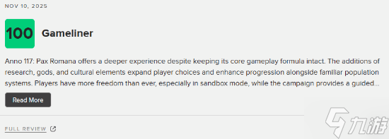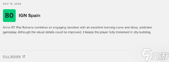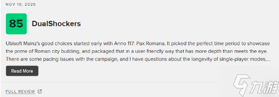 时间:2025-11-14 | 作者: | 阅读:0《纪元117:罗马和平》是育碧策略模拟类新游,将于11月13日发售,首发支持中文配音。目前游戏的M站媒体评分已经解禁: