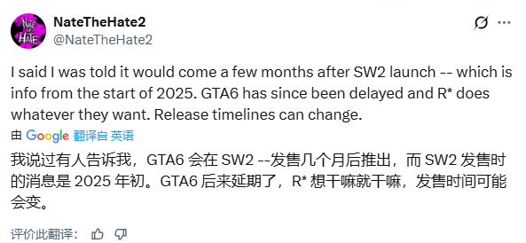 值得注意的是,近日,业内知名爆料人NateTheHate透露,《荒野大镖客:救赎2》的“增强版”仍在开发中。针对RDR1重制版的公布,他在社交媒体回应称:“这并不影响RDR2项目的推进”。当被问及具体发售时间时,他补充说明:“此前获得的消息是计划在Switch 2发售数月后面世——这是2025年初的信息”,同时指出随着《GTA6》的延期,Rockstar“完全掌握着发布计划的自主权,时间表可能随时调整”。