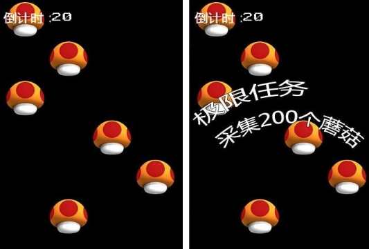 节奏紧凑的短局制游戏,单局时长仅需20秒。屏幕上随机弹出不同颜色的蘑菇,玩家需在短时间内尽可能多地完成收集。随着进程推进,蘑菇出现频率逐渐加快,同时伴随突发障碍物干扰,必须精准判断时机进行闪避。由于每次出现的位置毫无规律,每一次开局都充满未知与挑战。越往后节奏越紧张,非常依赖手眼协调能力,适合追求爽快体验的玩家。