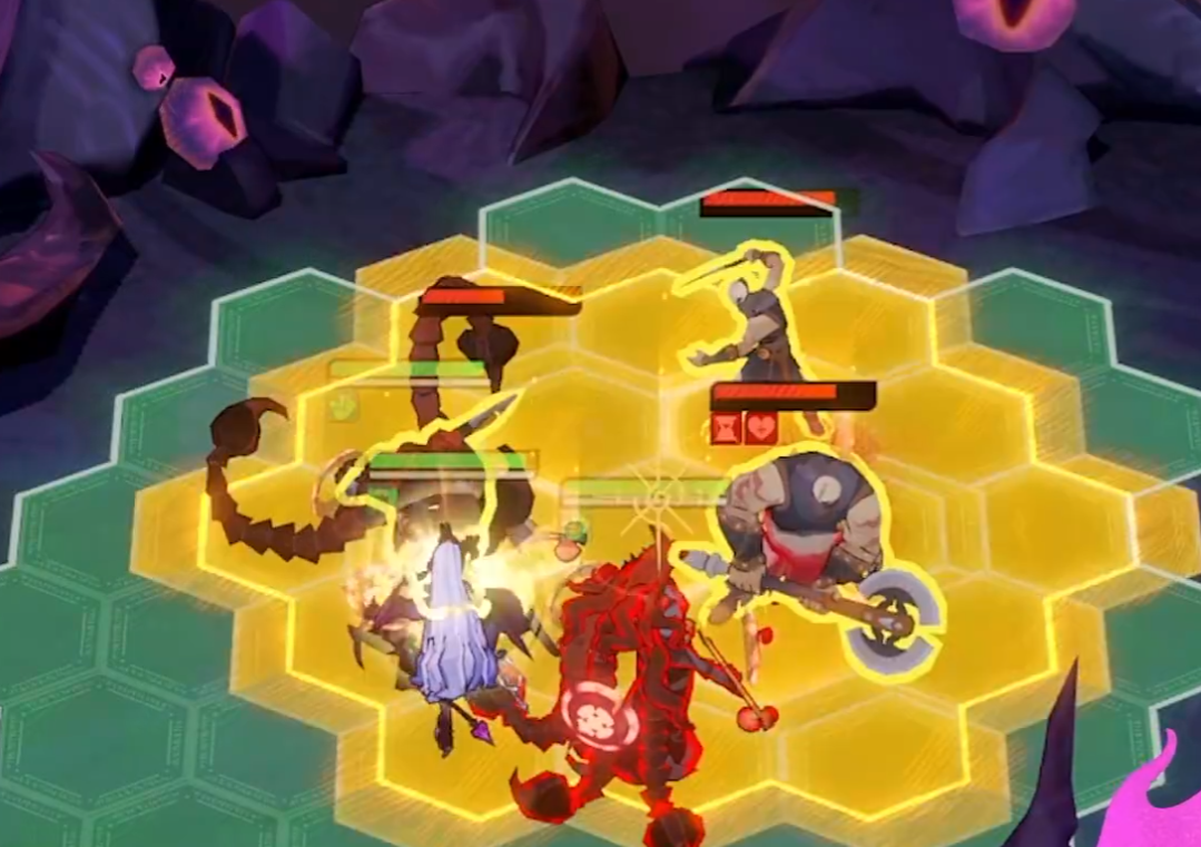 专属技能“奉献之爱”,战斗开始时,召唤若干只使魔环绕自身,使魔每隔一段时间会攻击敌人并造成伤害;若她受到意外伤害后,生命值低于一定比例,则献祭一个使魔来抵消本次伤害,并使自身在后续一段时间内无法被选中,且立刻回复一定最大生命值。