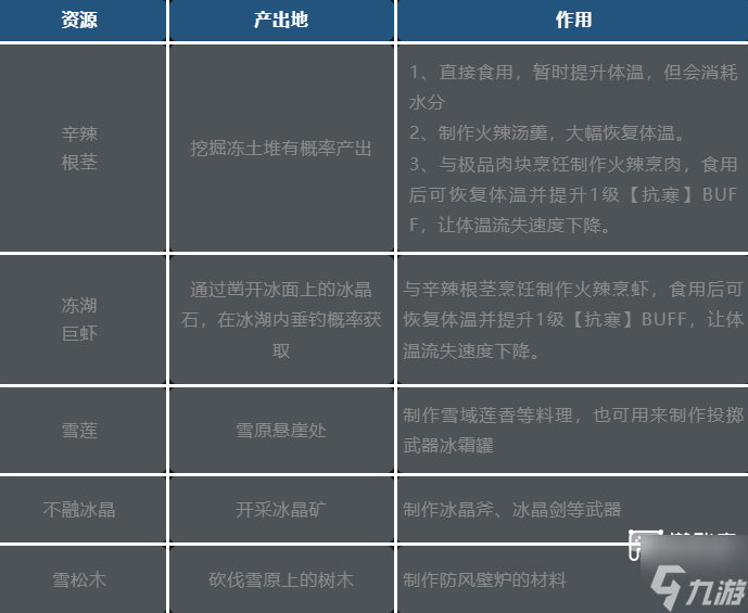 注意点:低温区域内燃料的消耗速度会大幅加快,燃料在雪原地区较难获取,取暖后记得熄灭篝火哦!