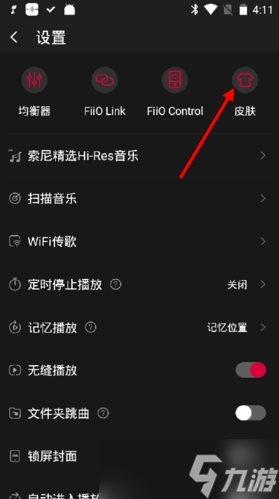 2.在设置菜单中,选择位于右上角的皮肤选项进入皮肤设置界面。