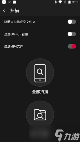 4.若希望快速添加全部音乐,可直接点击全部扫描按钮自动识别所有音频文件。