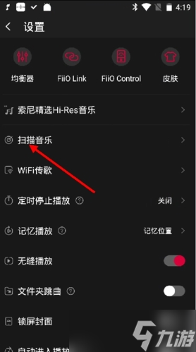 2.在设置菜单中找到并选择扫描音乐功能。