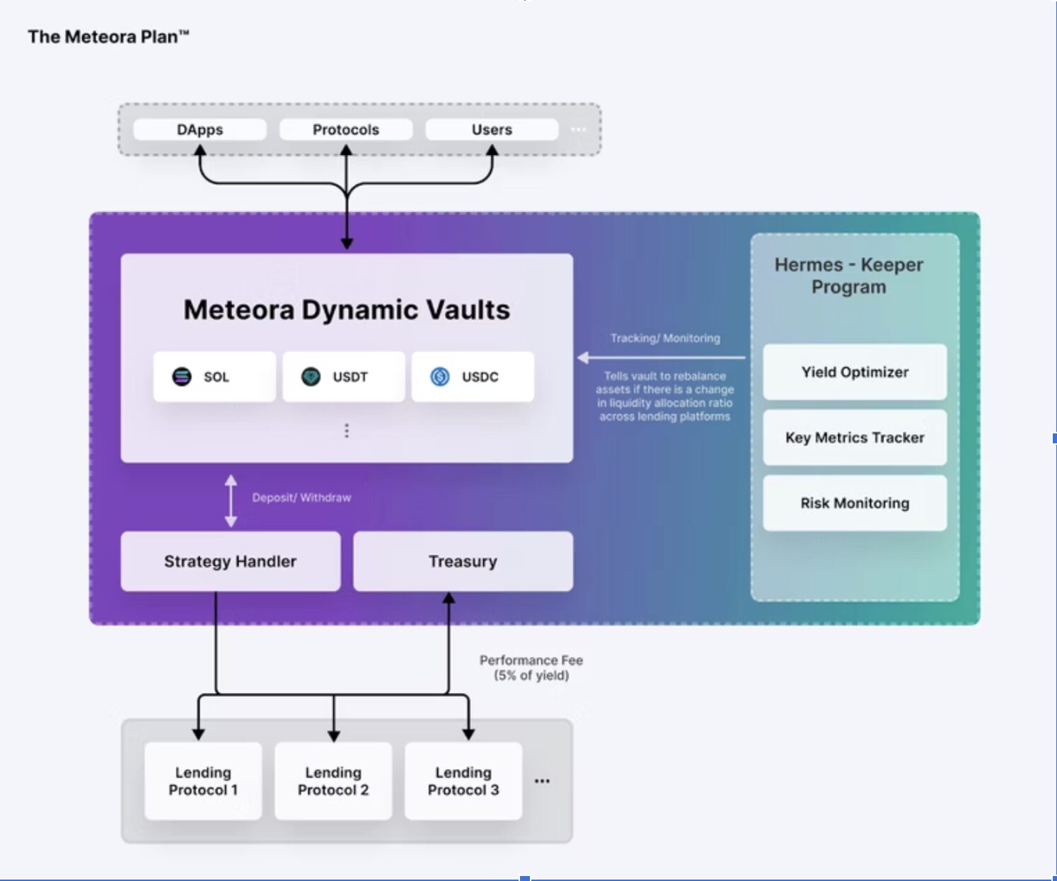 这是 Meteora 的延伸,它不仅能确保流动性的存在,还能创造可观的利润。Meteora 与众多其他 DeFi 协议合作,制定策略,从系统中的资金流动中获利。