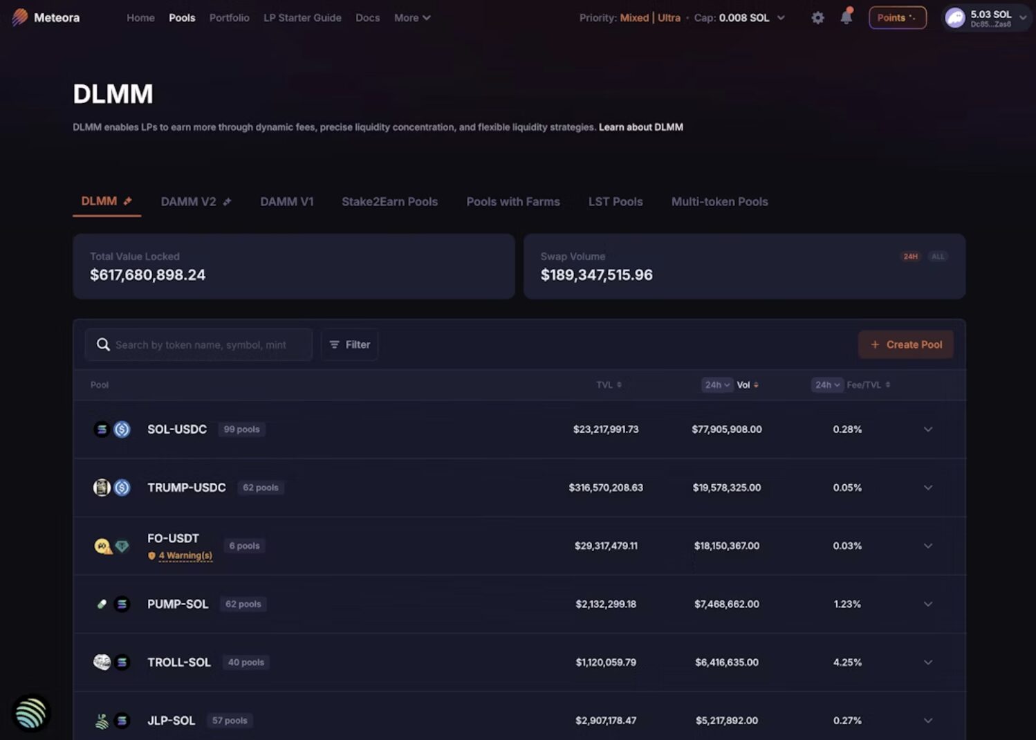 在接下来的章节中,我们将探讨 Meteora 的动态流动性做市商 (DLMM) 及其流动性工具套件如何重新定义 Solana 上的 DeFi 体验,以及为什么这项创新可能会重塑整个生态系统中流动性的真正运作方式。