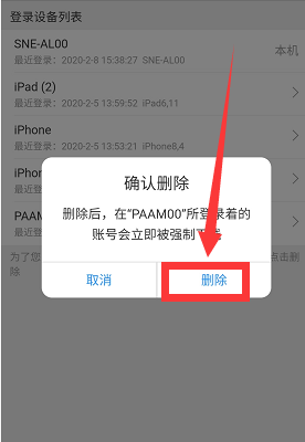 5. 第五步,来到登录设备管理界面,在下方点击一个非自己的设备名称。