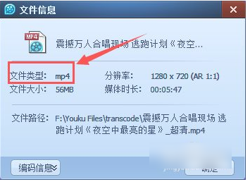 我们查看下载转码后的格式,确实为可以在其他播放器中播放的MP4格式。