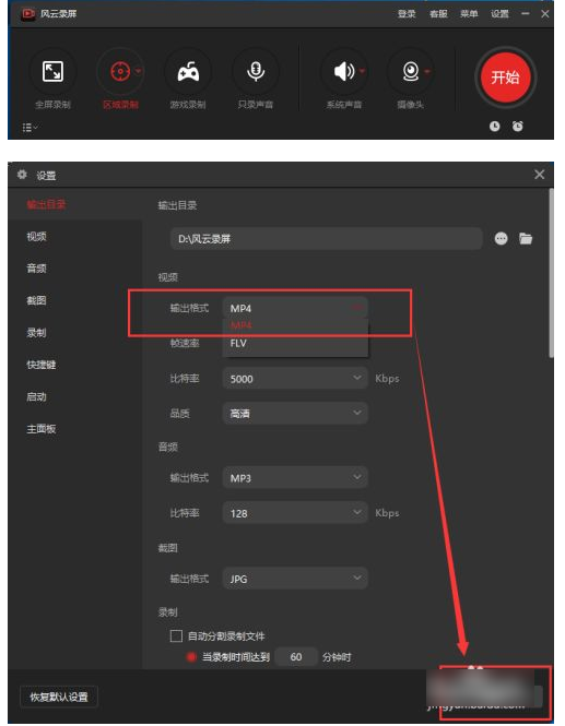 点击“设置”按钮,可以设置视频的格式以及视频大小,一般默认设置即可。