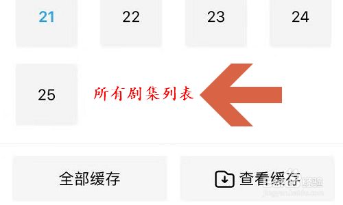 点击缓存以后,如果我们观看的是连续剧,那么系统会跳转到所有剧集的界面,如图一...不过这里只能选择“全部缓存”;