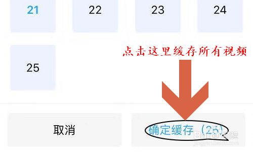 这样就会选中所有视频,我们只需点击“确定缓存”就能下载了,而且在缓存页面*上方还能选择下载视频的清晰度,也就是如图所示的高清或者说标清;