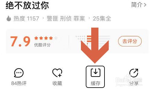 优酷APP目前是没有下载这两个字的,而是所谓的“缓存”,我们点击任意一段视频以后,在小窗口播放模式下就能看到“缓存”选项,见下图...