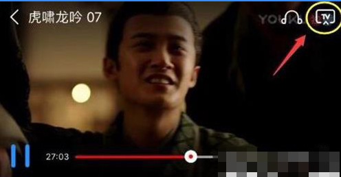 二、进入到播放页面之后,我们就可以看到在视频的右上角可以看到一个电视TV的图标了,点击。