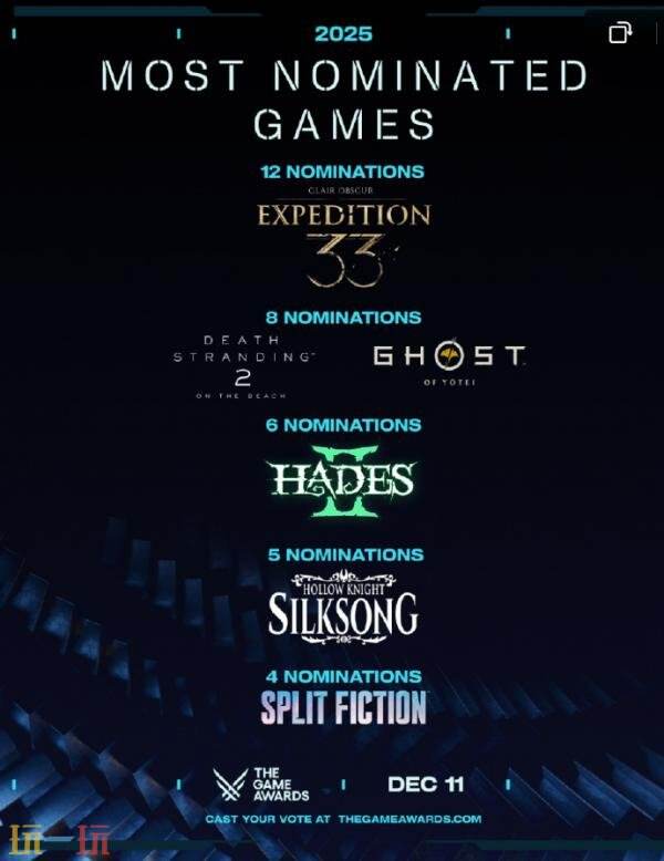 时间:2025-11-18 | 作者: | 阅读:0游戏大奖公布了 2025 年(The Game Awards 2025)的提名名单,该名单由来自全球 150 多家媒体出版物和创作机构的评审团选出。