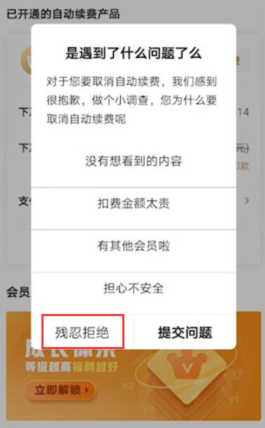 点击取消自动续费,不感兴趣,继续取消,确认关闭自动续费。