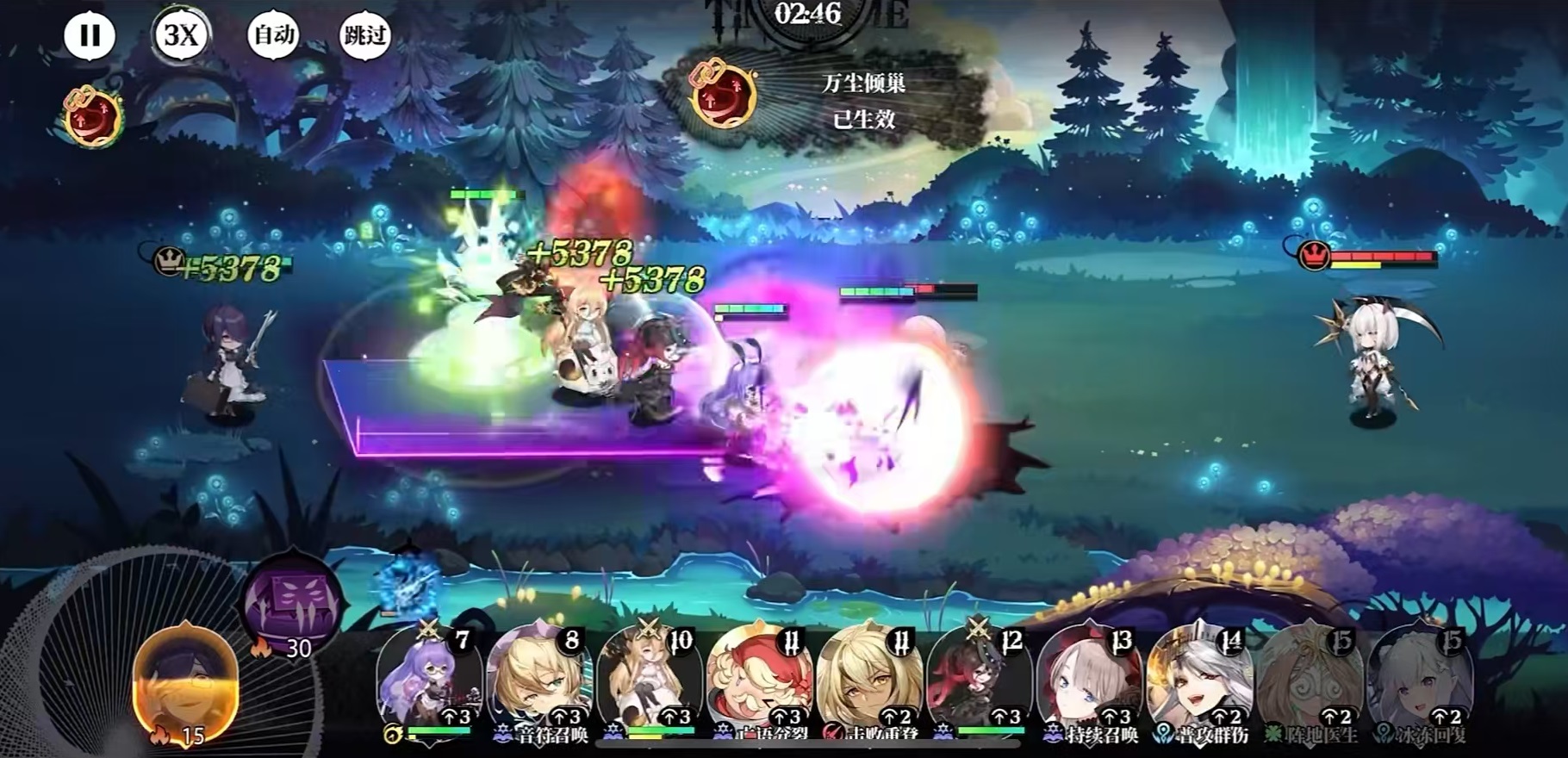 第二个技能为渐入佳境,当桃乐丝使用普通攻击或释放终极技能后,将获得一层“乱舞”状态。该状态可叠加,并随层数增加提升攻击力,在战斗中后期显著强化其输出效率。第三个技能明珠则直接提高自身的攻击力与最大生命值,进一步优化其续航能力和爆发潜力。第四个技能无垢猎手是其核心机制之一:当乱舞层数叠满后,所有攻击将无视目标一定比例的防御属性,实现高效穿透打击。技能升级后,无视防御的效果还将进一步增强,使她在斩杀残血单位时更加得心应手。