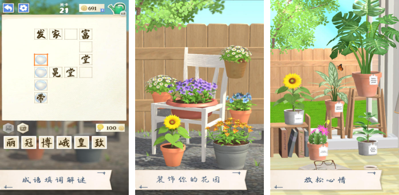 成语花园也是专门使用成语知识来进行互动的解谜佳作,可通过填写各种汉字让成语完整展现出极高的质量,游戏背景设定在春意盎然的花园中,再加上精彩的成语互动剧情承载着独特的魅力,清新惬意的环境营造会让大家轻松感受成语的含义,填字解谜、培养花园等超多的游戏玩法更具魅力。