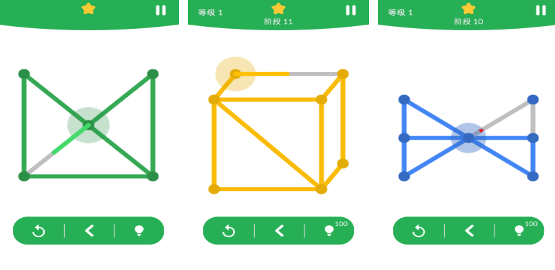 本作是款节奏很快的一笔画交互性手游,有着解谜烧脑的性质也完美展现出一笔画游戏精髓,玩家要尝试点击各种小点进行线条的连接,但只能一笔画完不可以重复点击,这样的设定让游戏闯关难度更高,还可以自选关卡让大家尽情感受一笔画游戏魅力,充满亮点的游戏节奏跟解谜设定也是特色所在。