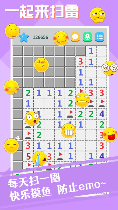 一个多人互动扫雷手游,游戏保留了通过数字推断地雷位置的核心规则,但是采用4800万格的超大型棋盘和千万级别的地雷数量,玩家会随机出生在地图上的某个区域,需要和其他玩家所有玩家一起进行扫雷。游戏支持玩家自由规划领土和净化雷区,可以通过皮肤装饰自己的领土范围,而且支持实时聊天和弹幕互动功能。