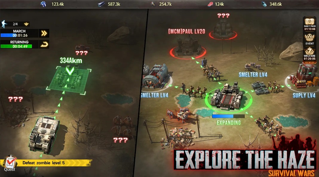 末世的背景元素将会在这里面成为一个主要的挑战,除了要在一无所有荒凉的世界当中建立自己的避难所之外,还要去训练专属于你们的军队,生存就是大家要去做到的唯一目标,运用自身的策略和周边的其它玩家共同联结,《废土征服》这款手游内还会有兵种的克制关系,战术的运用不要忽视。