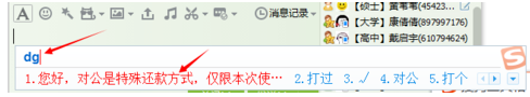 5、大功告成,随便找个可以打字的地方,试验一下自己的成果,只需要输入刚刚设置好的dg两个字母就可以一下子出来一大段设置好的文字,敲个空格键就可以了,大大提高常用语输入效率哦: