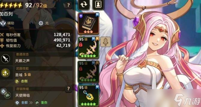 五星后获得被动,自身拥有30%减伤,普攻达到最大蓄力时,伤害提高20%,并使敌人沉默两秒,每五秒发动一次。佩戴专武之后,普攻命中时提高全队30%防御,持续五秒,每五秒发动一次。且普攻也会为命中的敌人留下魔花纹章,若下一次攻击没有命中该敌人则会爆炸,造成本次的普攻伤害,简单来说就是加强了一部分的群伤能力。武器技能,展开领域使范围内敌人受到四段伤害与异常,第一段为24%,后三段均为12%,共计60%的异常效果。