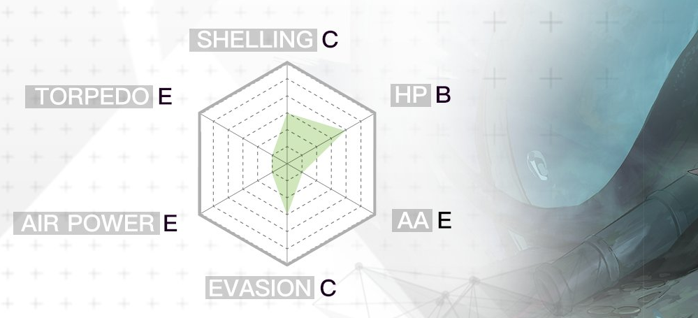 炮击C、耐久B、机动C,生存方面应该是对标一些紫色脆皮轻巡,自身没有防空属性和防空武器,因此在有敌方舰载机的环境中生存压力较大,除非是有防空大C来护驾。整体而言,是个偏向于虐菜与收藏向的舰船,战力力一般。