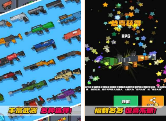 不仅是采用像素的风格所打造的手游,更是以第一人称,能展开枪战射击,自由度极高的沙盒题材游戏。玩家将化身为游戏当中的主角,在大小不同,形状不一样的独特地图里面开启与敌人之间的较量,涵盖十几种武器,大家可以进行选择。主要就是装弹数以及杀伤力会有一些区别,需要你根据每个武器这方面的特点,加入到紧张刺激的战斗。