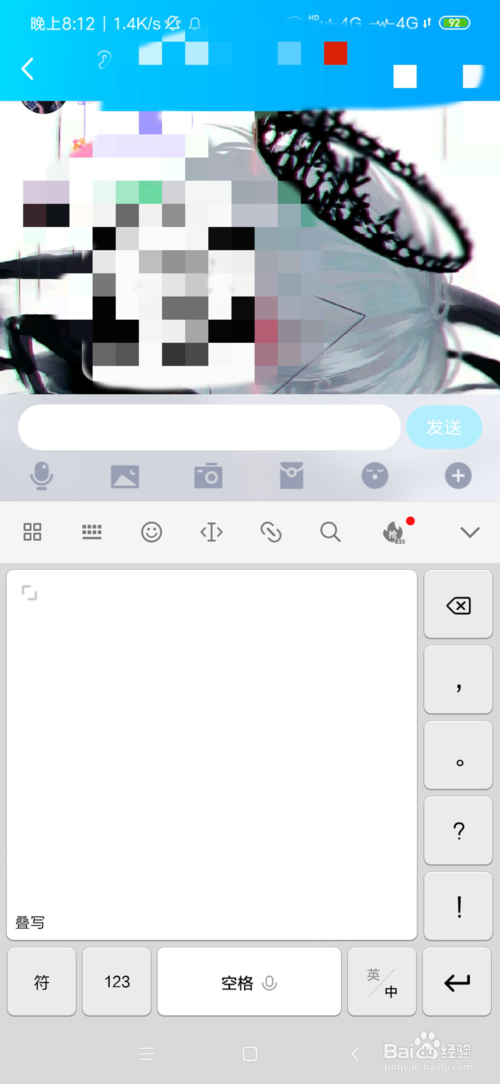 4.这时我们直接在手写区域内用手指在屏幕上写字即可,同时我们还可以开启叠字模式,以便加快我们手写输入的速度,更方便我们的使用。