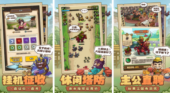 轻松上手的休闲类策略战争游戏,区别于传统大型国战模式,单局时长控制在约5分钟,适合碎片化时间娱乐。玩家扮演一位崛起中的三国主公,重返动荡年代,采用塔防结合肉鸽割草玩法,体验密集输出与连续击败敌军的畅快感。知名武将分布明确,支持一键召唤出战,简化操作流程的同时保留策略深度。