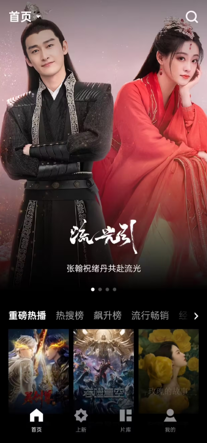 据悉,在开启概念版模式后,整个客户端界面相当简洁,底栏仅剩首页(推荐)、上新、片库节目、个人账号四个选项。