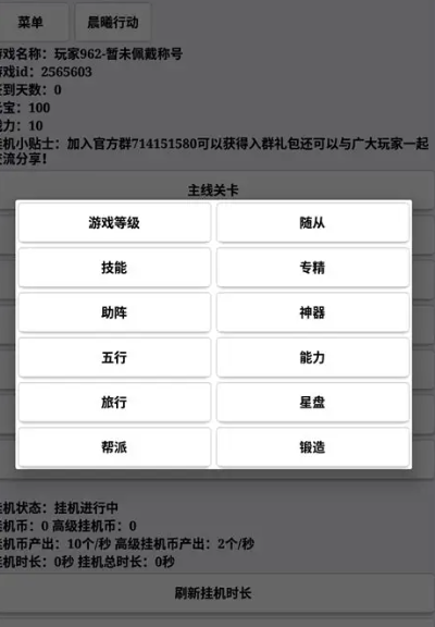 游戏画面色彩明亮,角色设计很可爱,游戏没有复杂的剧情,核心就是通过挂机获取各种道具和积分,用来提升角色的能力和解锁新的游戏内容,不管是吃饭还是工作间隙,打开游戏就能看到角色在自动成长,积累的资源还能用来解锁各种趣味玩法,让玩家在碎片时间里轻松获得游戏乐趣。